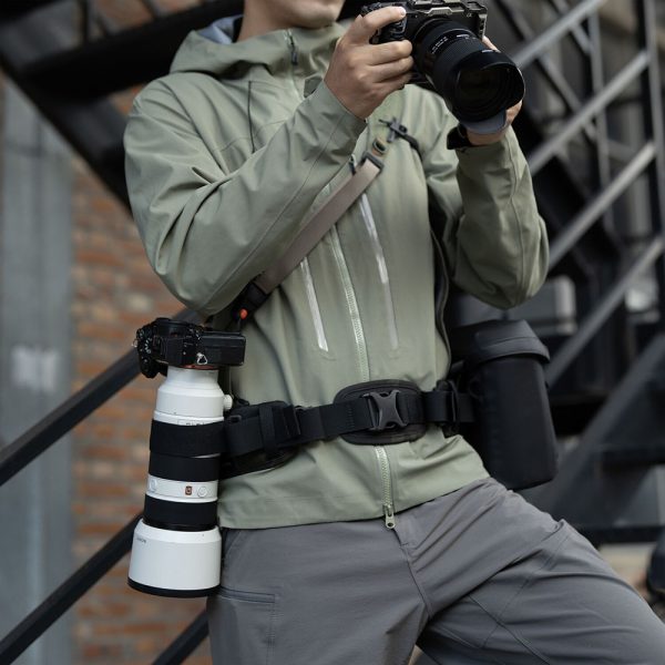 Về mặt công năng, chiếc đai này sở hữu tính đa dụng vượt trội với thiết kế “hai trong một”: bạn có thể sử dụng nó như một đai đeo độc lập cho các chuyến đi nhẹ nhàng hoặc gắn kết hợp với ba lô OneMo để trợ lực. Đai được trang bị nhiều điểm gắn kết (attachment points) cho phép người dùng linh hoạt lắp đặt các phụ kiện như kẹp máy ảnh tháo lắp nhanh (quick-release clip), túi đựng ống kính hay túi đựng chân máy. Đặc biệt, sản phẩm còn có dây neo máy ảnh (camera tether) ở bên phải giúp cố định thiết bị, ngăn chặn tình trạng rung lắc không mong muốn khi di chuyển, đảm bảo an toàn tối đa cho thiết bị của bạn.