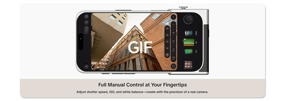Vượt xa một món đồ trang trí, RetroVA là một hệ sinh thái hình ảnh chuyên nghiệp giúp mở rộng giới hạn phần cứng của iPhone. Điểm nhấn ấn tượng nhất là khe cắm thẻ nhớ microSD tích hợp trực tiếp trên tay cầm, hỗ trợ ghi hình định dạng ProRes và HEVC chất lượng cao mà không làm đầy bộ nhớ trong của điện thoại. Khi kết hợp cùng ứng dụng PGYTECH Pro Imaging, người dùng có thể can thiệp sâu vào ISO, tốc độ màn trập, cân bằng trắng và áp dụng các bộ lọc màu film đặc trưng, mang lại những thước phim và hình ảnh đậm chất nghệ thuật với độ nét vượt trội.