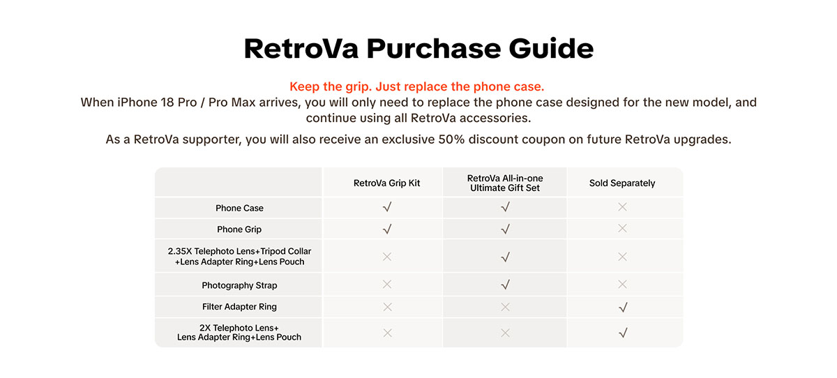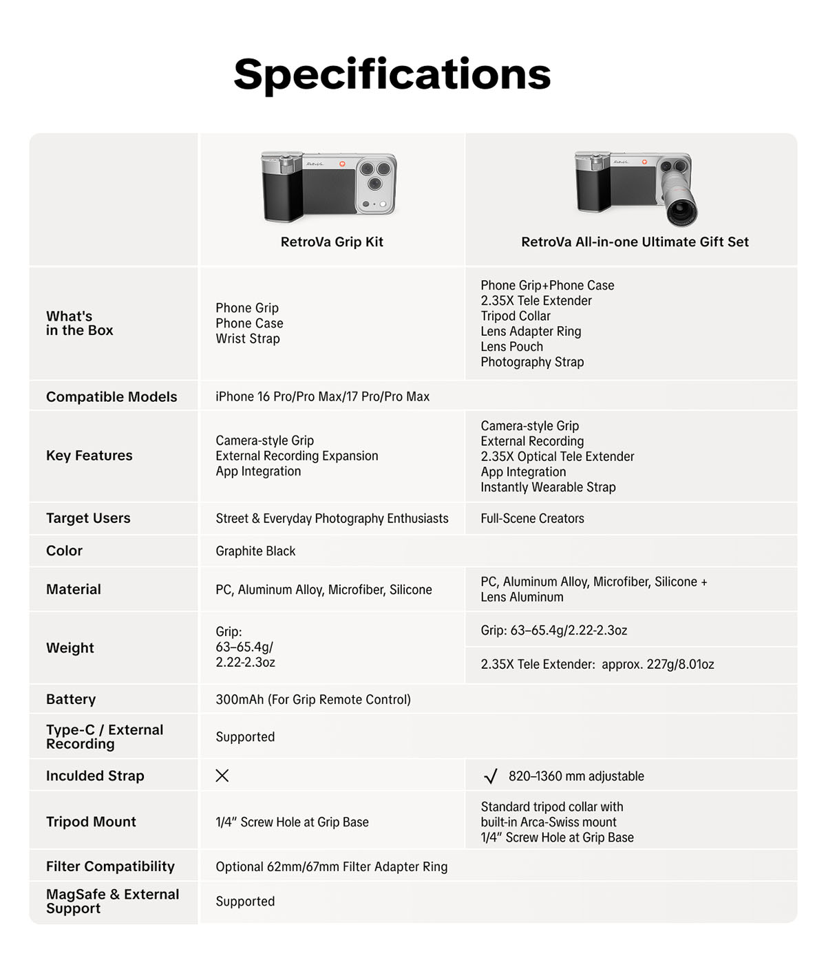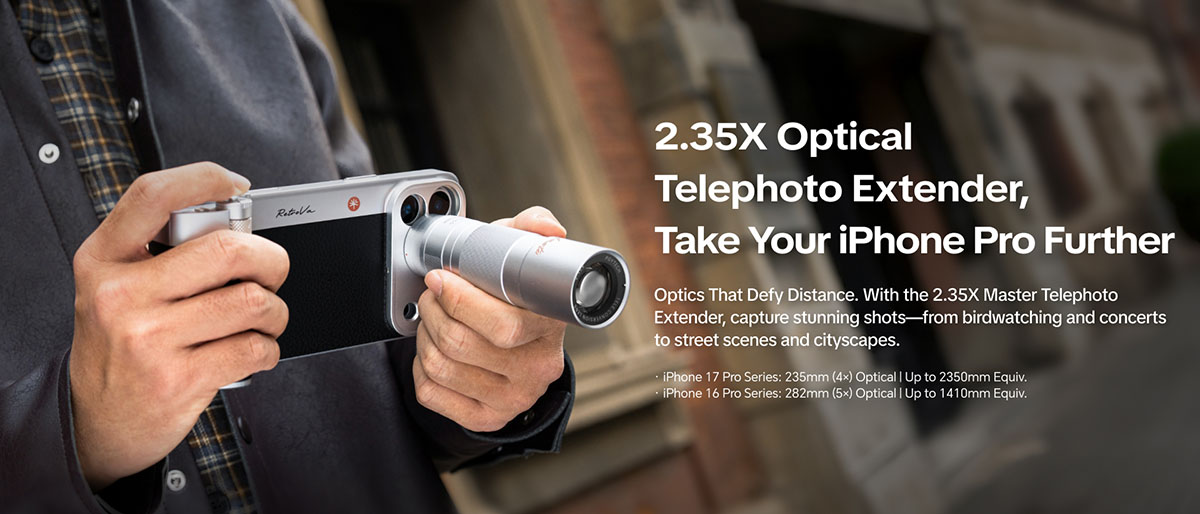 PGYTECH RetroVA Ultimate Set là bộ phụ kiện nhiếp ảnh di động cao cấp và toàn diện nhất, được thiết kế để biến iPhone 16/17 Pro Series thành một chiếc máy ảnh film cổ điển. Điểm khác biệt cốt lõi của phiên bản Ultimate chính là việc tích hợp hệ thống ống kính Master Telephoto Extender 2.35x, cho phép người dùng đạt đến tiêu cự quang học tương đương 282mm mà không làm suy giảm chất lượng hình ảnh. Sự kết hợp hoàn hảo giữa tay cầm điều khiển vật lý cơ học, ốp lưng phong cách cổ điển và hệ thống quang học chuyên nghiệp giúp bạn tự tin tác nghiệp trong mọi môi trường, từ chụp ảnh đường phố đến quay phim điện ảnh chất lượng cao.